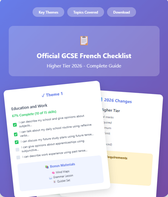 Get instant access to a powerful GCSE French (Higher Tier) tool designed to help your child succeed in the 2026 exam.